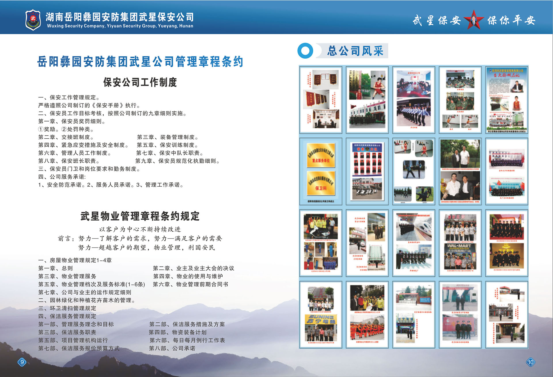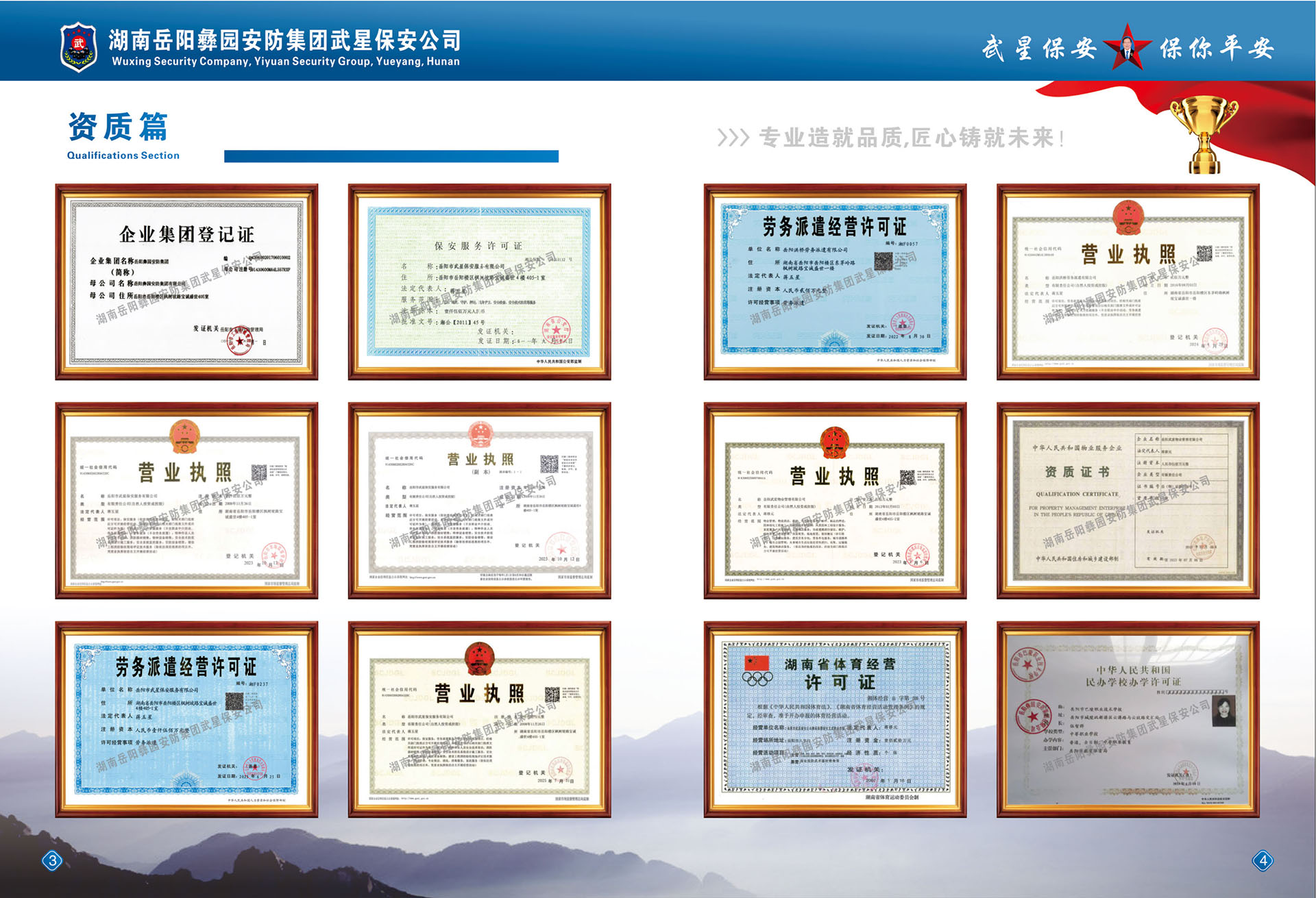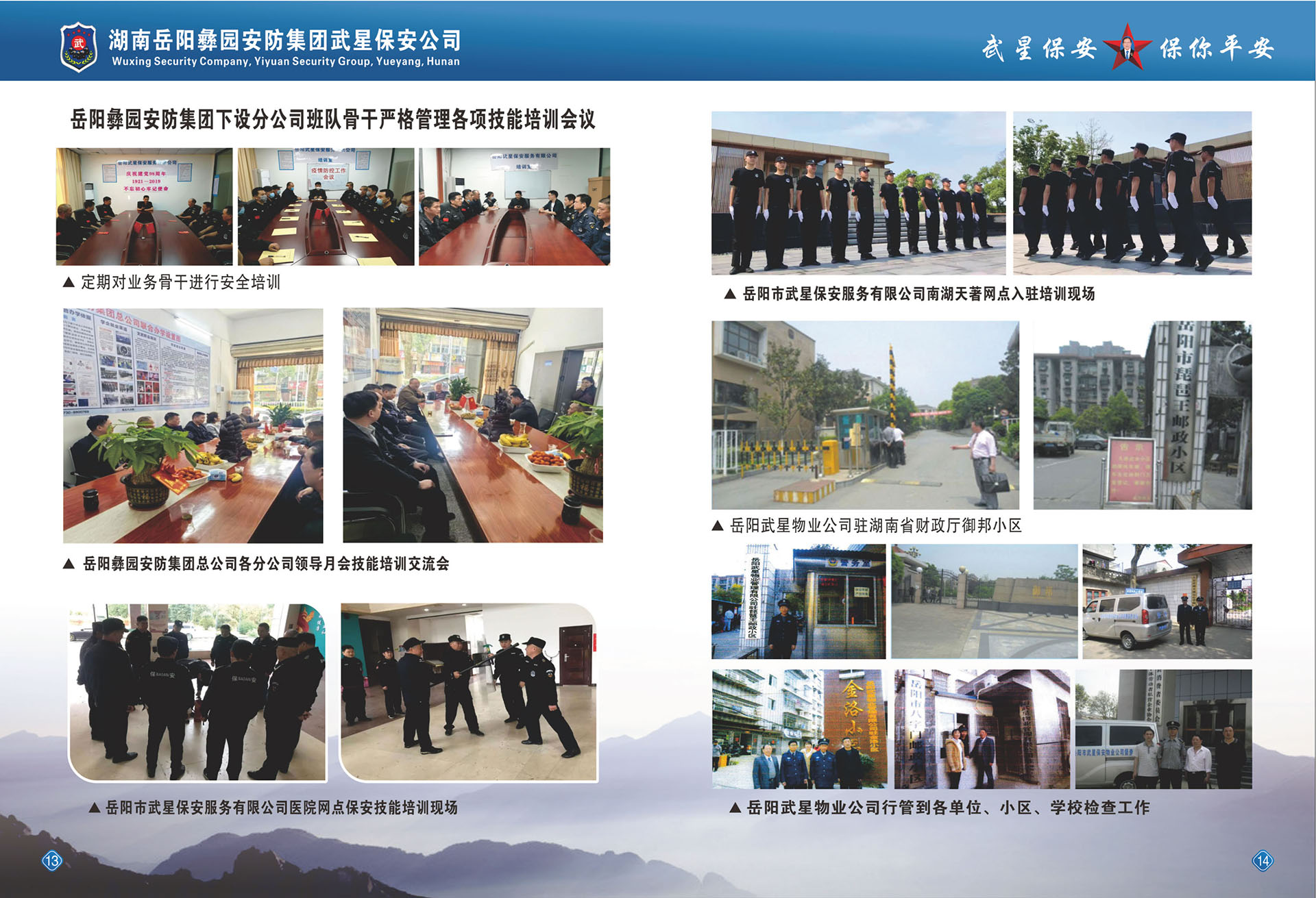 2017年6月正式成立了《岳陽(yáng)彝園安防集團(tuán)》,下設(shè)《武星保安公司》、《武星物業(yè)公司》、《洪橋勞務(wù)派遺公司》、《保鏢保安武術(shù)職業(yè)培訓(xùn)學(xué)校》等子公司