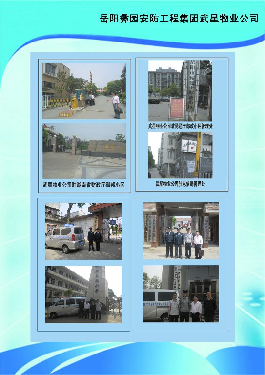 岳陽(yáng)武星物業(yè)管理有限公司繼岳陽(yáng)市武星保安公司于2012年2月成立,武星保安公司是經(jīng)省公安廳批準(zhǔn)成立的民營(yíng)保安公司,為滿(mǎn)足廣大客戶(hù)的迫切要求,公司能為客戶(hù)提供保安、物業(yè)整體服務(wù)。武星物業(yè)公司技術(shù)力量雄厚,有電梯維修工程師、園林綠化師、水電安裝工程師、消防等專(zhuān)業(yè)技術(shù)人才。為了更好地服務(wù)社會(huì)、培育特種人才,公司與岳陽(yáng)市巴陵職業(yè)技術(shù)學(xué)校聯(lián)合辦學(xué),開(kāi)設(shè)了保鏢保安武術(shù)散打班、物業(yè)管理班、園林綠化技術(shù)班、水電維修班、禮儀班,現(xiàn)有專(zhuān)業(yè)學(xué)員幾百名。公司為各黨政機(jī)關(guān)、社會(huì)團(tuán)體、廠(chǎng)礦企事業(yè)單位、金融機(jī)構(gòu)、房地產(chǎn)開(kāi)發(fā)商居民住宅、賓館、學(xué)校、娛樂(lè)場(chǎng)所等提供人力資源和技術(shù)防范服務(wù)。目前公司有幾十家大客戶(hù),公司優(yōu)質(zhì)的服務(wù)得到了客戶(hù)的好評(píng)。現(xiàn)經(jīng)公安廳市公安局批準(zhǔn)成立了保衛(wèi)科、督查應(yīng)急大隊(duì),為客戶(hù)不定時(shí)的服務(wù)和回訪(fǎng),公司有一批業(yè)務(wù)精、能力強(qiáng)的管理人才,為客戶(hù)提供高質(zhì)量的服務(wù)。武星保安物業(yè),保您家安樂(lè)業(yè)。